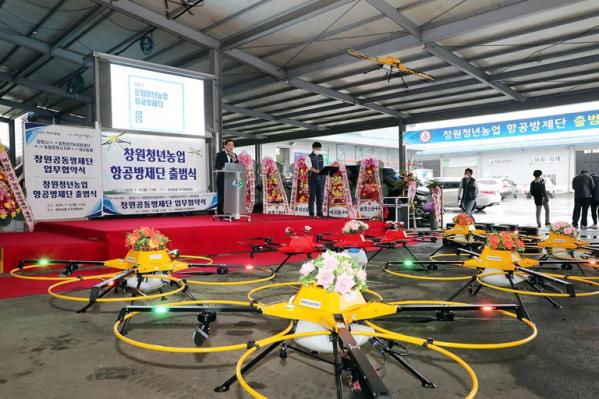 [times창원]창원시(시장 허성무)는 경남 최초로 농업분야에서 사회적경제기업과 드론을 활용한 농작물 병해충 방제작업에 나선다고 13일 밝혔다. 특히 농촌고령화 등 영농현장의 일손 부족으로 인한 적기 방제 어려움을 해소하고 청년농업인의 새로운 일자리 창출에 기여할 것으로 보인다.