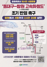 [times창원]창원특례시는 ‘동대구-창원-가덕도신공항 고속화철도’의 ‘제5차 국가철도망 구축계획’ 반영을 촉구하기 위해 10월 17일부터 11월 16일까지 약 한 달간 ‘동대구-창원 고속화철도 조기 반영 촉구’ 범시민 서명운동을 전개한다.   현재 창원을 운행하는 경전선 고속철도(KTX, SRT) 이용객은 2024년 942만 명에 달했으며, 2025년에는...