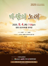 [타임즈창원]창원시남성합창단(단장 백경수, 지휘 이상엽, 피아노 진혜민)은 오는 9월 4일(목) 저녁 7시 30분, 창원 성산아트홀 대극장에서 제19회 정기연주회 ‘바람의 노래’를 개최한다고 밝혔다.   2006년 창단 이후 창원시를 대표하는 남성합창단으로 성장해온 창원시남성합창단은 매년 정기연주회와 다양한 문화 행사 참여를 통해 시민들에게 감동을 전해왔다...