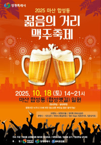 [times창원]창원특례시는 오는 18일 ‘제3회 마산 합성동 젊음의 거리 맥주축제’를 마산 합성동 합성옛길 및 합성동지하도상가 일원에서 개최한다고 밝혔다.   이번 축제는 ‘2025년 전통시장 잔치한마당 지원사업’의 일환으로 추진되는 시민참여형 지역 상권 축제로, 합성대로상가·합성동상가·합성옛길시장·합성동지하도상가(대현프리몰 창원점) 등 4개 상인회가 주...