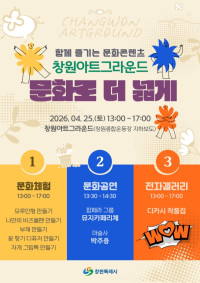 [times창원]창원특례시(시장권한대행 장금용)는 완연한 봄을 맞아 시민 누구나 일상에서 다채로운 문화예술을 즐길 수 있는 「창원아트그라운드, 문화로 더 넓게」 행사를 오는 4월 25일 토요일 창원종합운동장 지하보도에서 개최한다고 밝혔다.   이번 행사는 오후 1시부터 5시까지 진행되며, 시민들이 멀리 이동하지 않고도 도심 속...