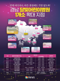 [times창원]경상남도(도지사 박완수)는 소아 야간·휴일 진료 사각지대 해소를 위해 진주시에 ‘달빛어린이병원’을 신규 지정하고, 10월 20일부터 운영한다.   ‘달빛어린이병원’은 만 18세 이하 소아환자가 평일 야간과 휴일에도 신속하게 진료받을 수 있도록 운영...