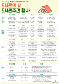 [times창원]창원특례시 의창도서관과(과장 김외화)에서는 2026년 도서관의 날(4.12.)과 도서관주간(4.12.~4.18.)을 맞아, 최윤덕·고향의봄·명곡도서관에서 4월 9일부터 4월 23일까지 다양한 독서문화행사를 운영한다고 밝혔다. ▲4월은 도서관의 날 “도서관...