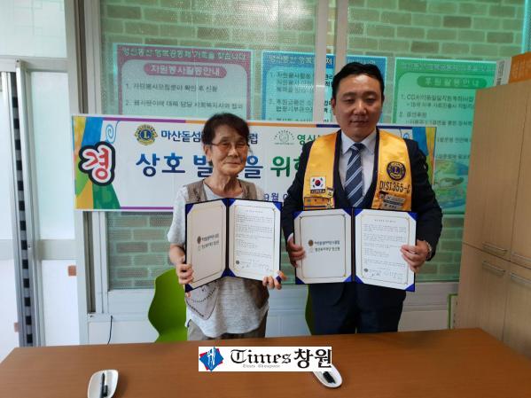 "도움이 필요한 곳에 라이온이 있습니다" 국제라이온스협회 355-C지구 마산돝섬라이온스클럽과 사회복지법인 영신복지재단 영신원은 5일 오후2시 영신원 사무실에서 지속적인 성장 및 발전을 위하여 노력하고 정기적인 방문을 통해 상호공동발전 및 우호증진을 위하여 업무 협약식을 체결했다.
