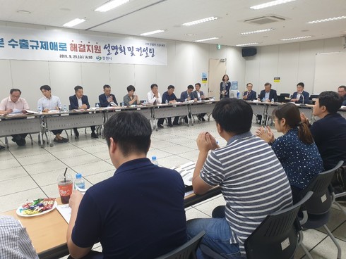 이날 행사는 최근 일본의 수출규제 조치로 촉발된 한·일 간의 갈등이 지속되는 가운데 18일 한국이 화이트리스트에서 일본을 제외하는 조치를 시행하면서 가중된 지역기업의 현황을 청취하고 기업의 애로를 현장에서 해결하기 위해 마련됐다.
