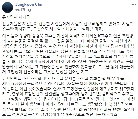 다음은 진중권 전 동양대 교수의 페이스북 전문이다.