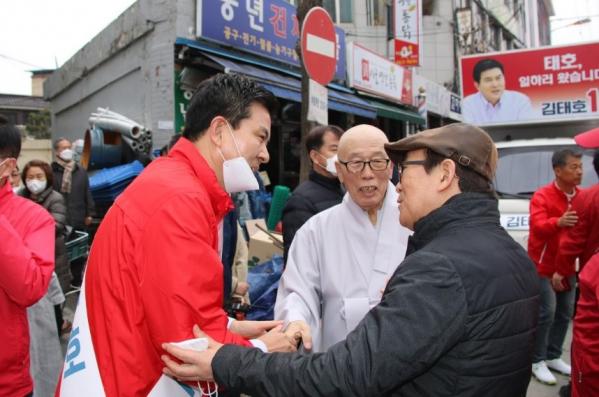 그러면서"우리 고향 부모형제 여러분들이 저 김태호를 경남의 아들로 pk의 아들로 만들어주셨듯이 이번에 김태호를 반드시 살려서 대한민국의 희망을 만드는 대한민국의 변화와 혁신과 미래를 위해서 아들로 만들어주시지 않겠습니까?"라고 재차 지지를 호소했다.
