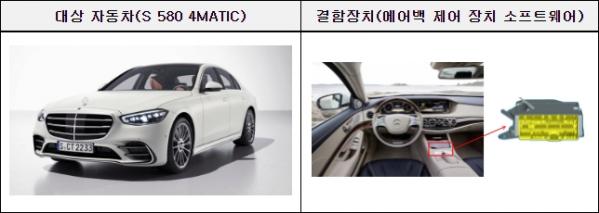 메르세데스벤츠코리아㈜에서 수입, 판매(판매이전 포함)한 S 580 4MATIC 등 7개 차종 773대는 에어백 제어 장치 소프트웨어의 오류로 충돌 시 조수석 에어백이 전개되지 않아 탑승자에게 상해를 입힐 가능성이 확인되었고,